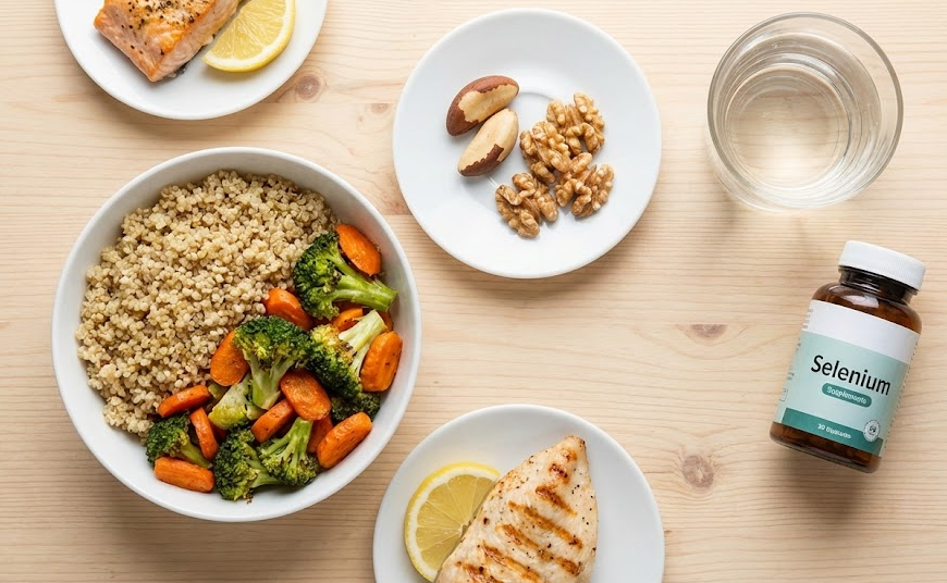 - 추천 식품: 브라질너트가 압도적 1등입니다. 하루에 딱 2알만 먹어도 하루 권장량을 채웁니다. 그 외에 달걀, 마늘, 참치에도 풍부합니다.