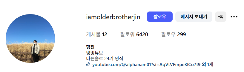 나는솔로 24기 영식으로 출연한 형진이의 소소한 일상 유튜브
