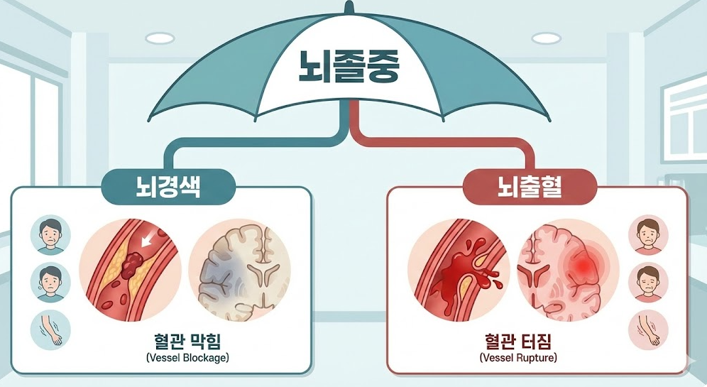많은 분들이 "뇌졸중이 온 건가요, 뇌경색이 온 건가요?" 하고 헷갈려 하시는데, 사실 이 두 단어는 서로 다른 병이 아니라 '부모와 자식' 같은 관계랍니다. 내 병을 정확히 알고 치료하기 위해서는 이 두 용어의 관계와 차이점을 명확히 구분하는 것이 첫걸음이에요. 오늘은 비슷해 보이지만 치료법은 정반대인 뇌졸중과 뇌경색의 차이를 아주 속 시원하게 정리해 드릴게요.