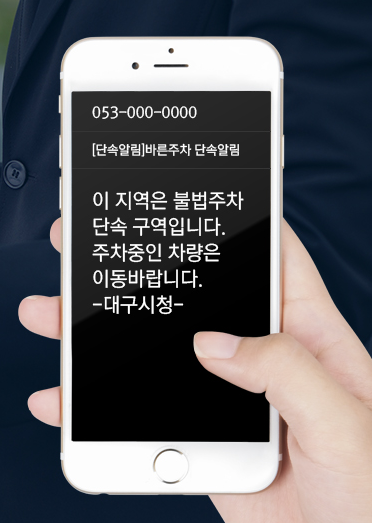달성군 역시 불법 주정차 차량이 CCTV에 1차 촬영되면, 등록된 휴대폰으로 단속 예정임을 알리는 문자 메시지를 발송합니다.