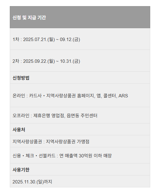 지원금은 2025년 11월 30일까지 사용해야 해요. 기한 내에 사용하지 않은 잔액은 아쉽게도 자동으로 소멸되니, 꼭 기간 내에 알뜰하게 소비하시길 바랍니다. 남은 기간 동안 계획적으로 사용해서 알찬 소비 계획을 세워보세요! 잠자는 지원금이 없도록 꼼꼼히 챙겨주세요!
