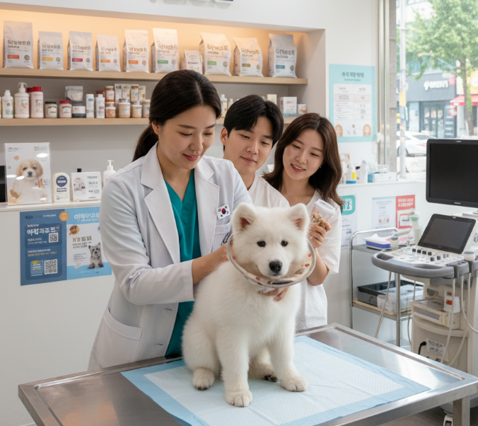 필수 예방접종: 종합백신, 광견병, 코로나/인플루엔자/켄넬코프(개), 백혈병(고양이) 등