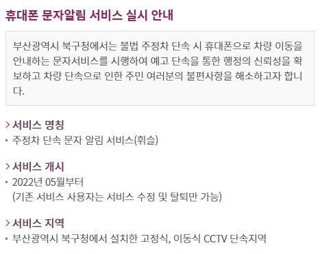 '부산 북구 주정차 단속 알림 서비스'만 가입해두면 단속 카메라에 찍히더라도 바로 문자로 알려줘서