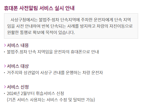 한 번 신청해두면 단속 지역에 주차할 때마다 문자를 받을 수 있어 정말 편리합니다.