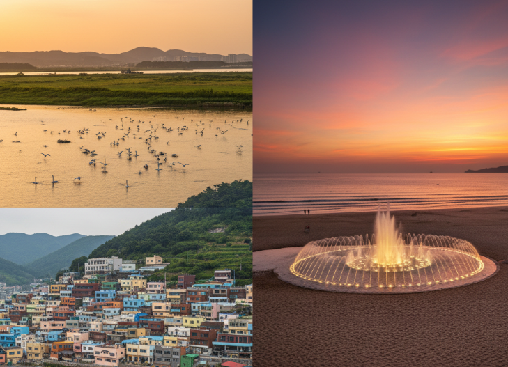 사하구 남쪽 해안에는 부산을 대표하는 명소 중 하나인 다대포 해수욕장이 있습니다. 낙동강 상류에서 내려온 고운 모래로 이루어진 천연 백사장과 함께, 이곳의 낙조(落照) 는 그야말로 장관이죠. 특히 다대포 해변공원의 '꿈의 낙조분수' 는 대한민국 최대 규모를 자랑하며, 밤마다 화려한 음악과 물줄기 쇼를 선보여 방문객들에게 잊지 못할 추억을 선사합니다. 또한, 산자락을 따라 질서정연하게 늘어선 계단식 집단 주거 형태로 유명한 감천문화마을 역시 사하구의 대표적인 문화 명소입니다. 알록달록한 집들과 골목마다 숨어있는 예술 작품들은 이곳을 '한국의 마추픽추', '부산의 산토리니'라고 불리게 만들었죠.
