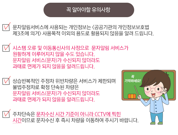 주정차단속알림서비스를 이용할 때 몇 가지 주의사항