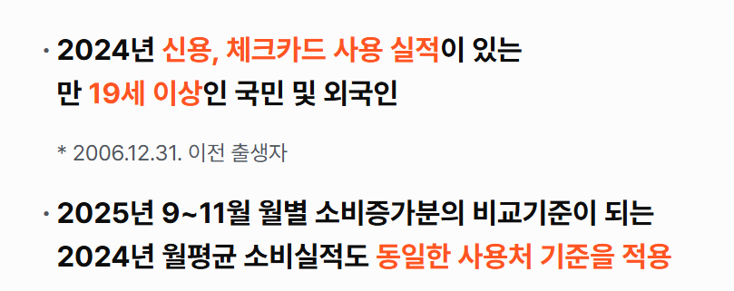 신청 대상은 2024년 신용카드 또는 체크카드 사용 실적이 있는 만 19세 이상 대한민국 국민 및 외국인 등록증을 받은 외국인입니다. (2006년 12월 31일 이전 출생자) 상생페이백 신청은 2025년 9월 15일 오전 9시부터 11월 30일 자정까지이며, 상생페이백 공식 누리집에서 온라인으로 신청해야 합니다. 온라인 신청이 어려운 분들을 위해 전통시장 상인회, 소상공인지원센터 등에서 신청 보조를 받을 수 있습니다. 신청은 단 한 번만 하면 3개월(9월, 10월, 11월) 소비 증가분에 대해 모두 적용됩니다. 11월 30일까지 신청 시 9월, 10월분 증가분이 있어도 소급 지급됩니다. 상생페이백 기간을 놓치지 않도록 미리 알림을 설정하는 것이 좋습니다.