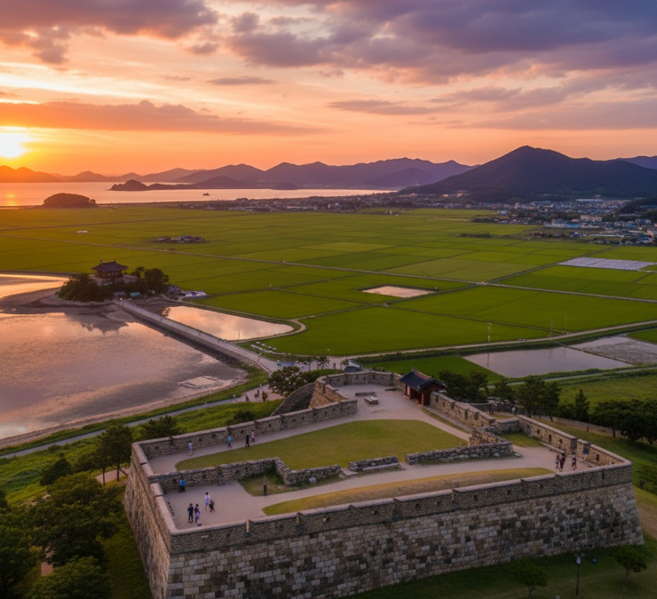 서산의 지리적 특징을 보면, 태안반도의 중심부에 자리하고 있으며, 복잡한 해안선이 특징인 전형적인 리아스식 해안을 형성하고 있습니다. 특히 천수만 간척사업으로 조성된 간월호와 부남호는 드넓은 농경지와 함께 철새 도래지로서 중요한 생태적 가치를 지니고 있습니다. 이러한 지리적 이점 덕분에 서산은 간척지 쌀, 육쪽마늘, 어리굴젓, 생강 등 다양한 농특산물과 신선한 해산물이 풍부하여 미식 여행지로도 인기가 높습니다.