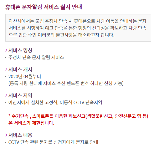 아산시 주차단속 알림서비스, 어떻게 신청하나요?
