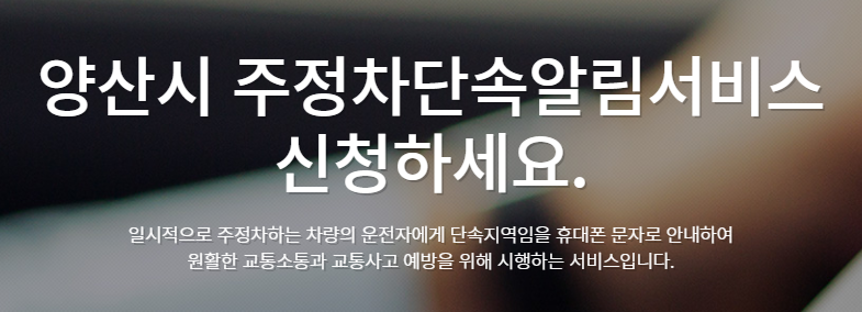 양산시의 주차단속 알림 서비스는 단속 카메라(CCTV)가 설치된 구역에 차량이 진입하여 불법 주정차로 1차 단속되었을 때, 운전자에게 문자 메시지를 통해 해당 사실을 즉시 알려주는 서비스입니다.