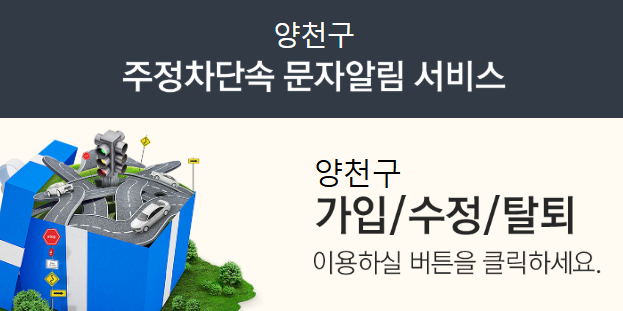 양천구의 똑똑한 주차 솔루션, '주정차단속 알림서비스'! 이제 걱정 없이 양천구의 매력을 마음껏 누리세요.