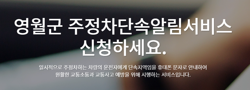 즐거운 여행 중 갑자기 날아드는 불법 주정차 과태료 고지서는 정말이지 최악의 경험일 거예요. 하지만 영월군을 포함한 많은 지자체에서 운영하는 '주정차 단속 알림 서비스' 만 잘 활용하시면 이런 불필요한 걱정은 접어두셔도 좋습니다.