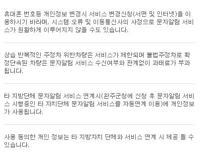 이렇듯 볼거리, 먹을거리, 쉴 거리가 가득한 완주! 하지만 여행 중 잠시 한눈판 사이 주정차 단속 문자를 받는다면 기분이 상할 수밖에 없겠죠? 이제부터 이 불상사를 막아줄 단속 알림 서비스에 대해 알아봅시다.