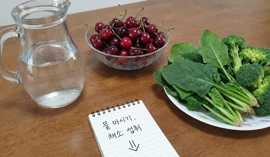- 타이밍: 한 번에 벌컥벌컥 마시는 것은 소용없습니다. 종이컵 한 잔(약 200ml) 분량을 깨어있는 동안 1시간 간격으로 나누어 마시는 것이 혈중 요산 농도를 희석하는 데 가장 효과적입니다. 맹물이 힘들다면 이뇨 작용이 없는 보리차나 히비스커스 차를 활용하세요.