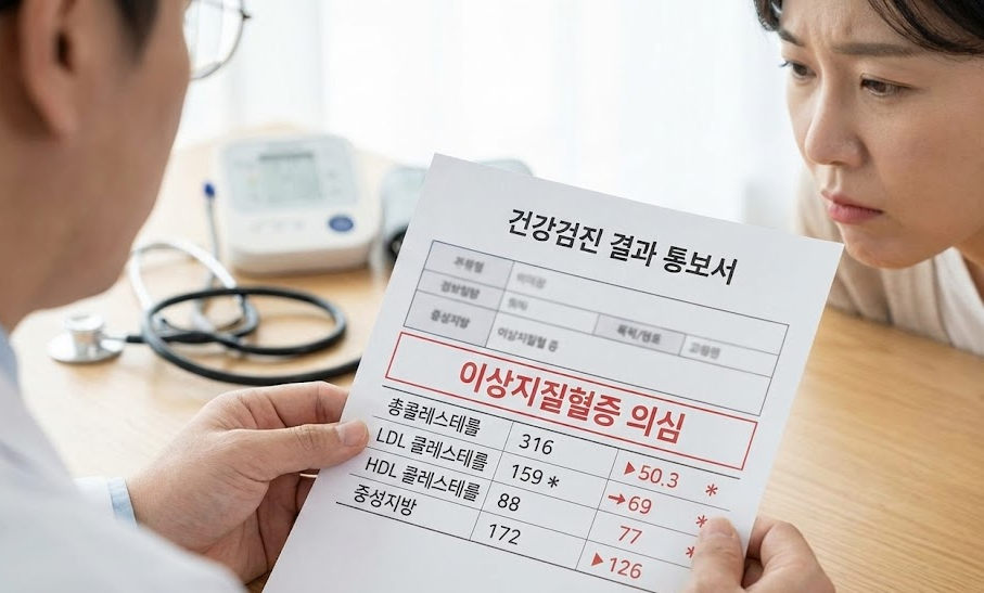 검진 결과표의 '이상지질혈증 의심'이라는 글자는 여러분을 겁주기 위함이 아닙니다. "지금 생활 패턴을 바꾸지 않으면 위험해요"라고 몸이 보내는 친절한 경고장입니다.