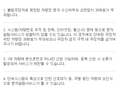 차량 매매 또는 휴대폰 번호 변경 시 반드시 정보를 수정하거나 탈퇴해야 합니다. 그렇지 않으면 타인에게 단속 알림이 발송될 수 있습니다.