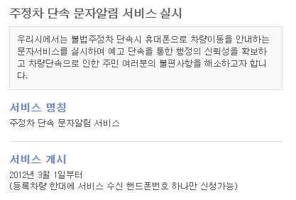 서비스 대상 :불법 주정차 단속 CCTV 설치 구간 이동식 단속(캠코더)이나 현장 단속은 제외