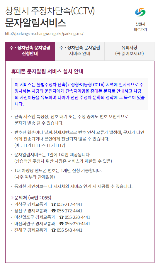 창원시 주정차단속알림서비스, 신청 방법은?