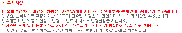 이 서비스는 고정형 CCTV를 통한 단속에만 해당됩니다. 사람이 직접 단속하는 경우나 이동식 단속 차량에 의해 단속될 때는 알림이 오지 않을 수 있다는 점을 꼭 기억해 주세요.