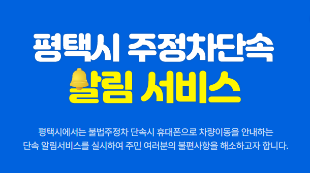 평택 시민들과 평택을 방문하는 모든 운전자분들, 이제 더는 걱정하지 마세요! 평택시가 제공하는 '주정차 단속 알림 서비스' 만 있다면 과태료 폭탄을 피할 수 있습니다!