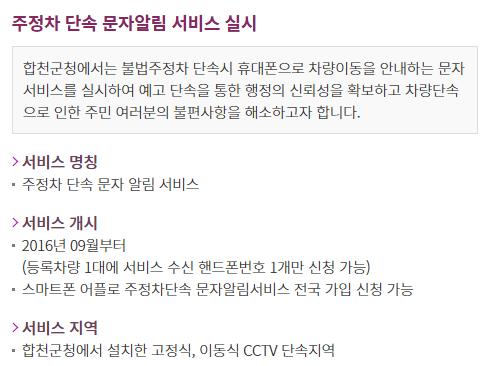 주차단속알림서비스의 신청은 매우 간편