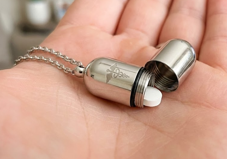 - 개봉: 목걸이 펜던트를 돌려 엽니다. (평소에 너무 꽉 잠가두면 손이 떨려서 못 열 수 있으니, 적당한 강도로 잠가두는 센스가 필요해요!)
