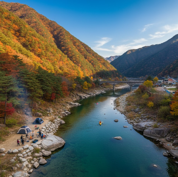 - 청정 자연: 홍천강, 팔봉산, 공작산 등 수려한 자연 경관이 펼쳐져 있으며, 특히 홍천강은 맑은 물과 아름다운 풍경으로 캠핑, 낚시, 레저 활동의 명소로 손꼽힙니다.